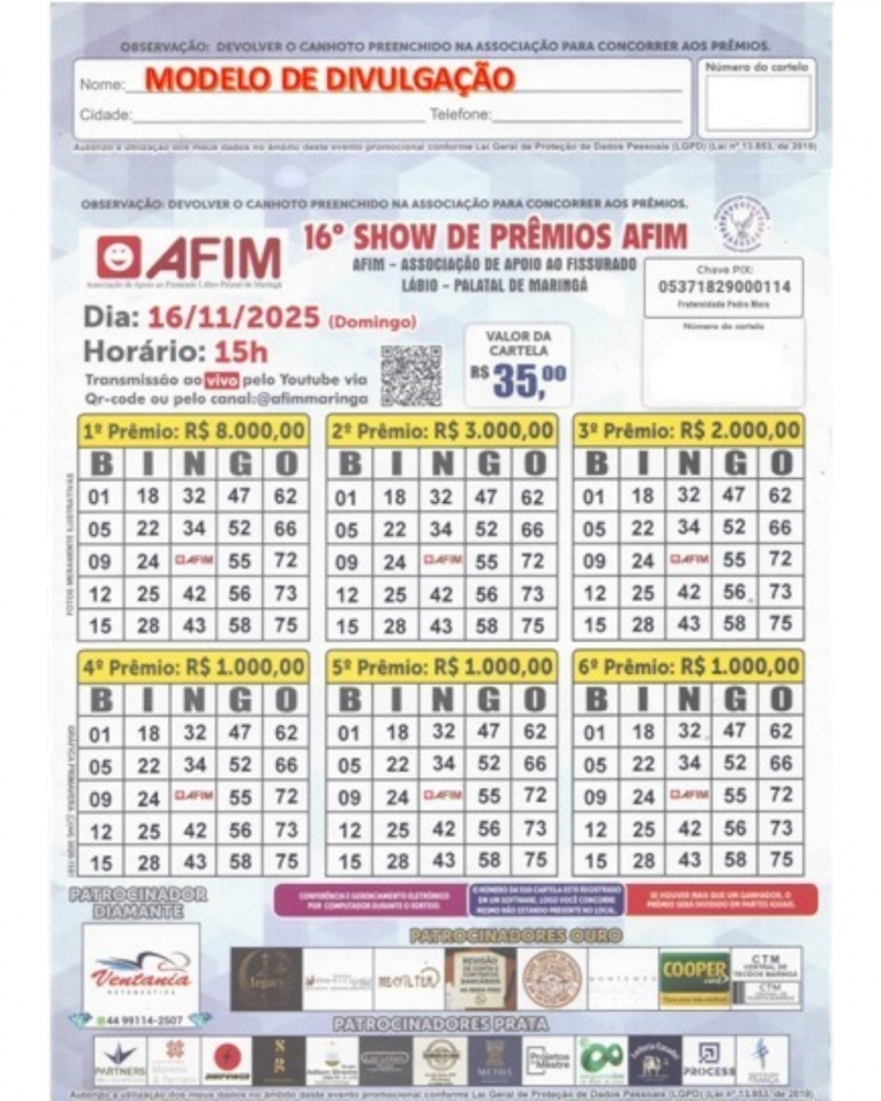 👉 Suas cartelas podem ser adquiridas e enviadas pelo WhatsApp e os seus dados serão preenchidos pela equipe da AFIM.